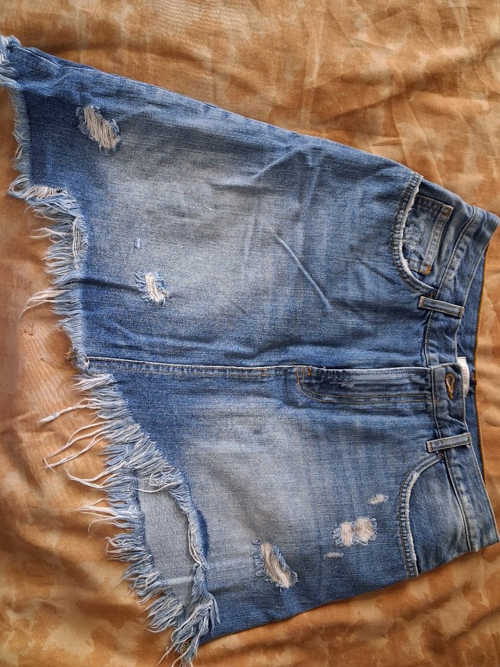 Kadınlar için mavi kot mini etek, bol kesim ve bohem tarzı ile kısa uzunlukta. Püsküllü kenarlar ve yıpranmış detaylara sahiptir, günlük kullanım için uygundur.