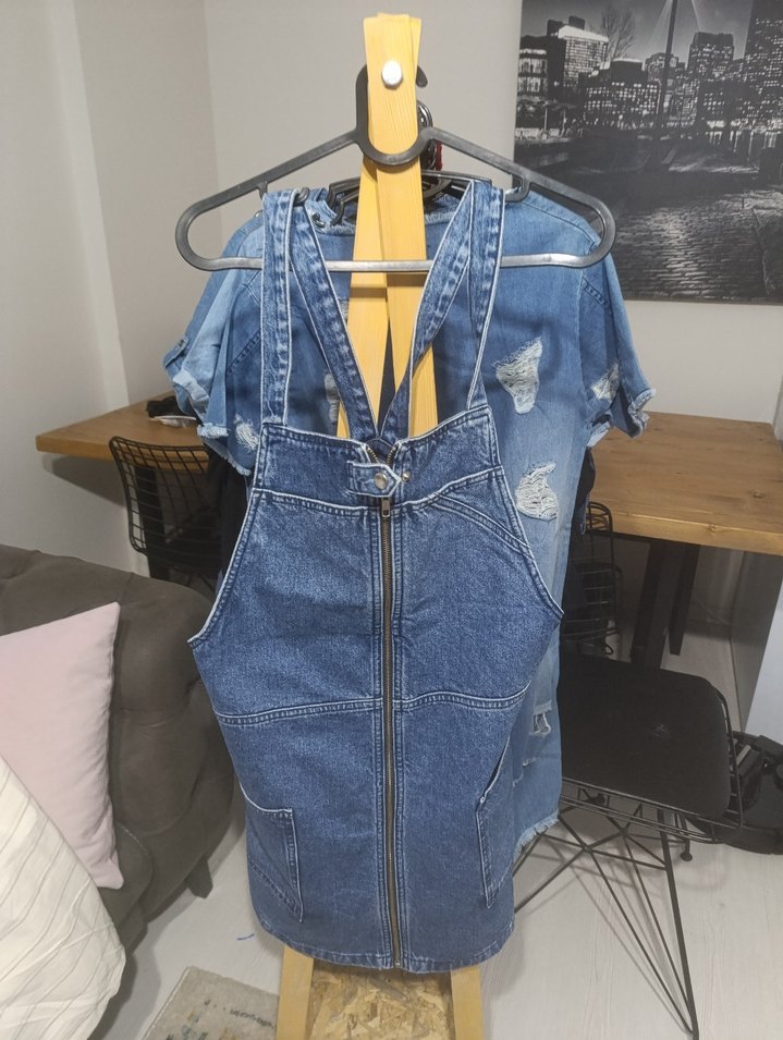 Kadın Mavi Kot Mini Salopet Elbise