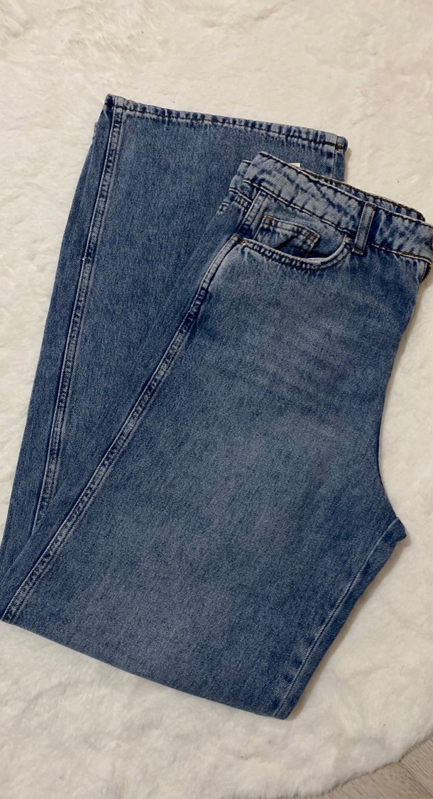 Bu kadın mavi denim kot pantolonlar, normal kesim ve midi boyda olup, rahat ve şık hiç kullanılmadi etiketi üzerinde
