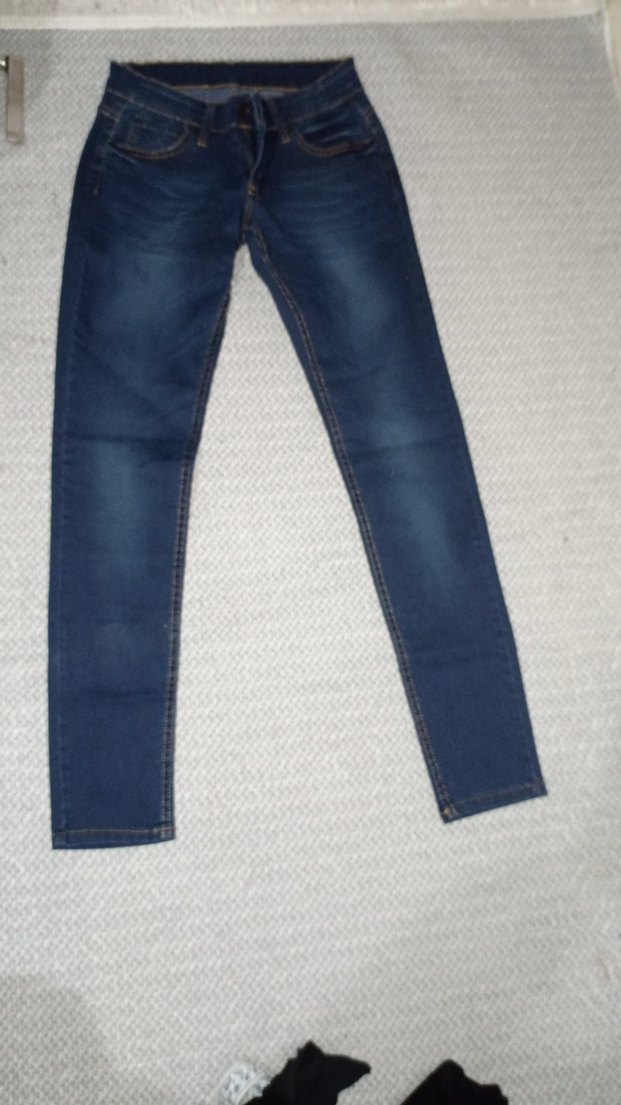 Kadınlar için mavi kot pantolon, kemerli ve normal boyda. Düz desensiz, günlük rahat kullanım için uygundur.