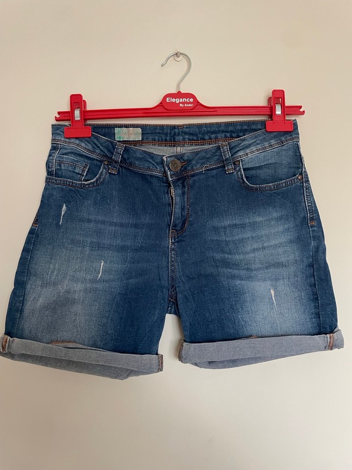 Kadın Mavi Kot Şort, Gevşek Kesim, Mini