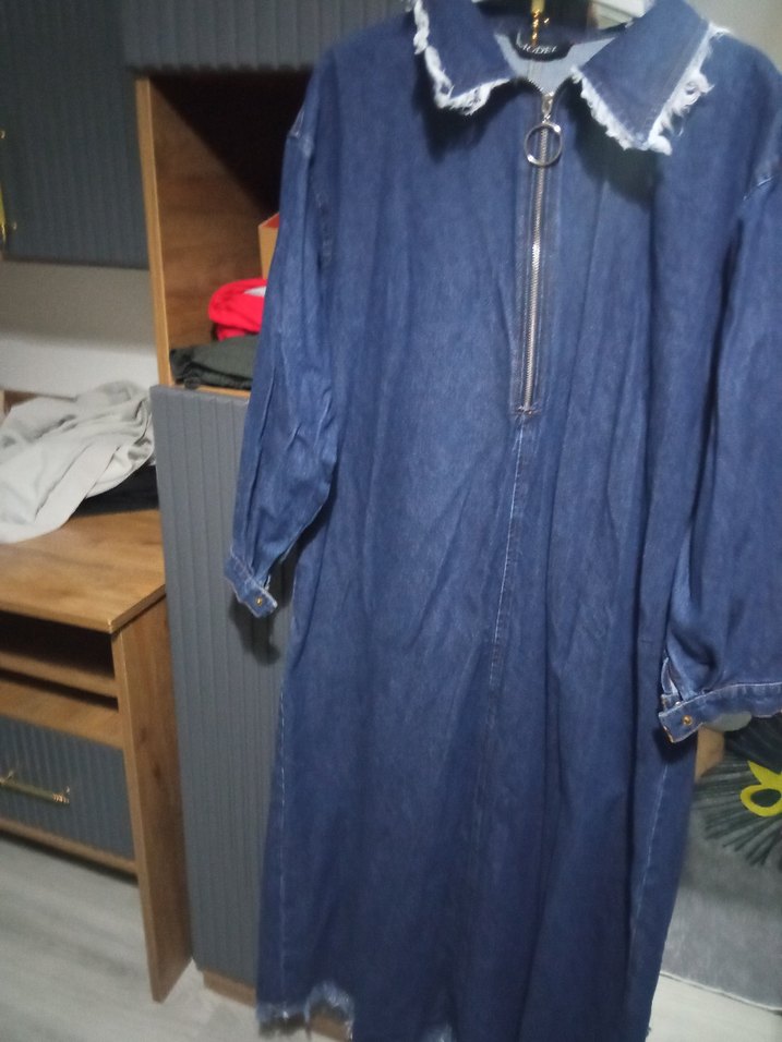 Kadın Mavi Kot Uzun Elbise Fermuarlı