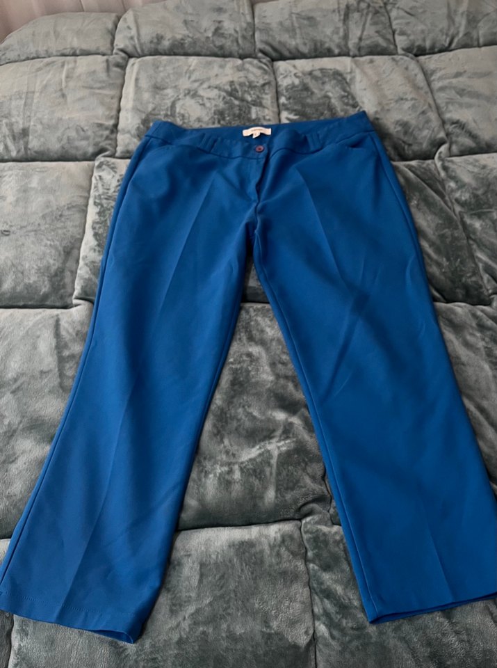 Kadın mavi kumaş pantolon, normal kesim desensiz tasarımıyla ofis için uygun.