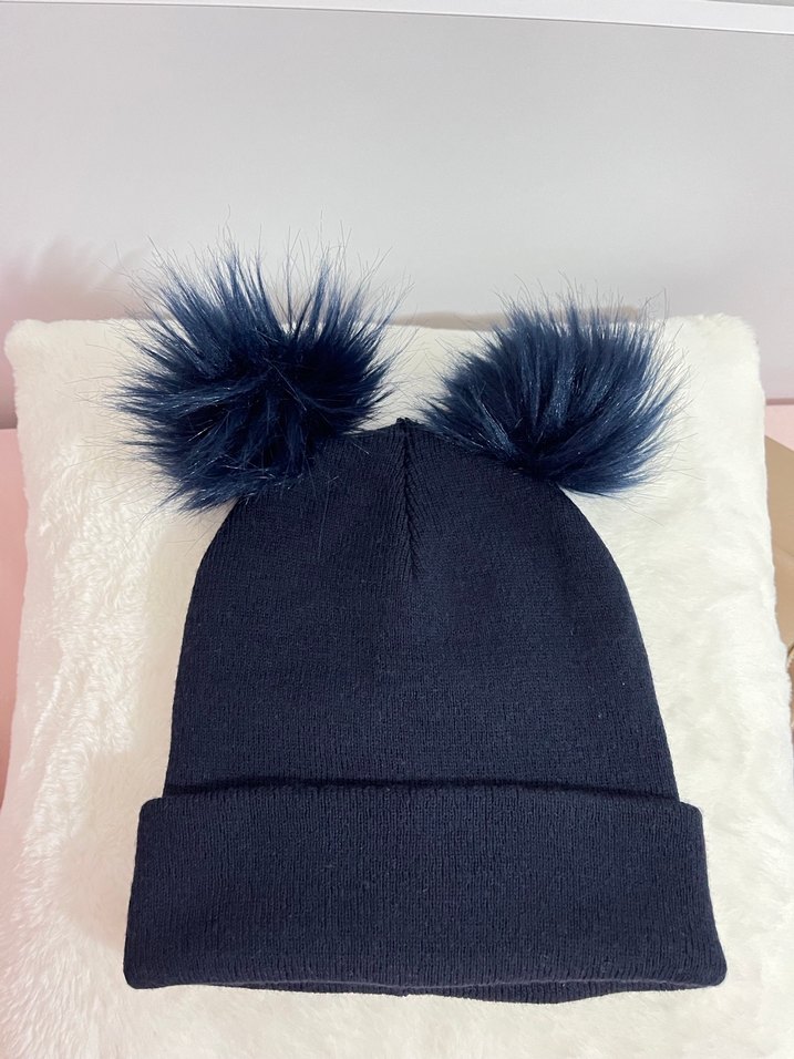 Kadın Mavi Kürklü İki Ponponlu Bere