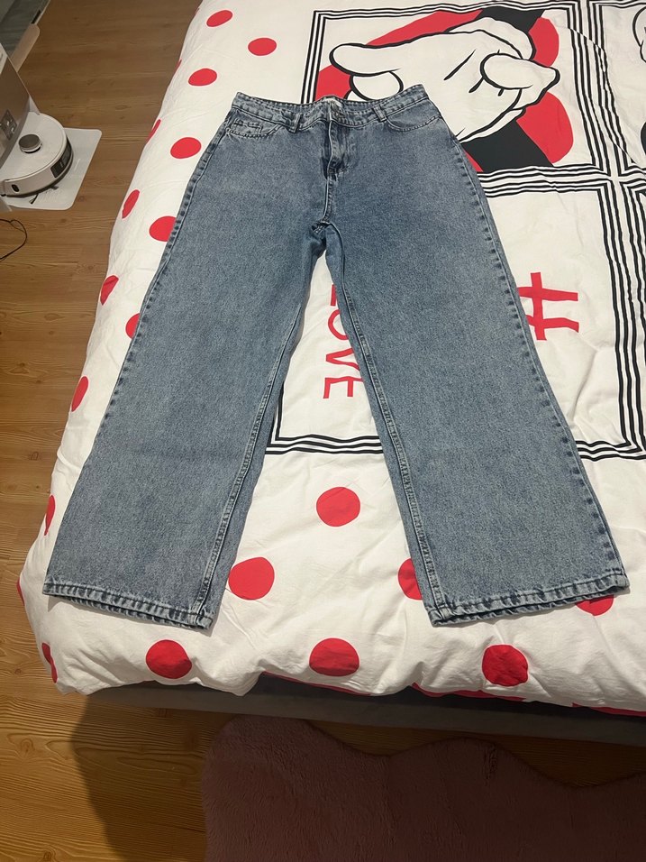 Pastel mavi tonlarında, bağlama desenli, rahat kesim kadın denim pantolon. Midi boyuyla günlük kullanım için şık ve rahat bir seçim.