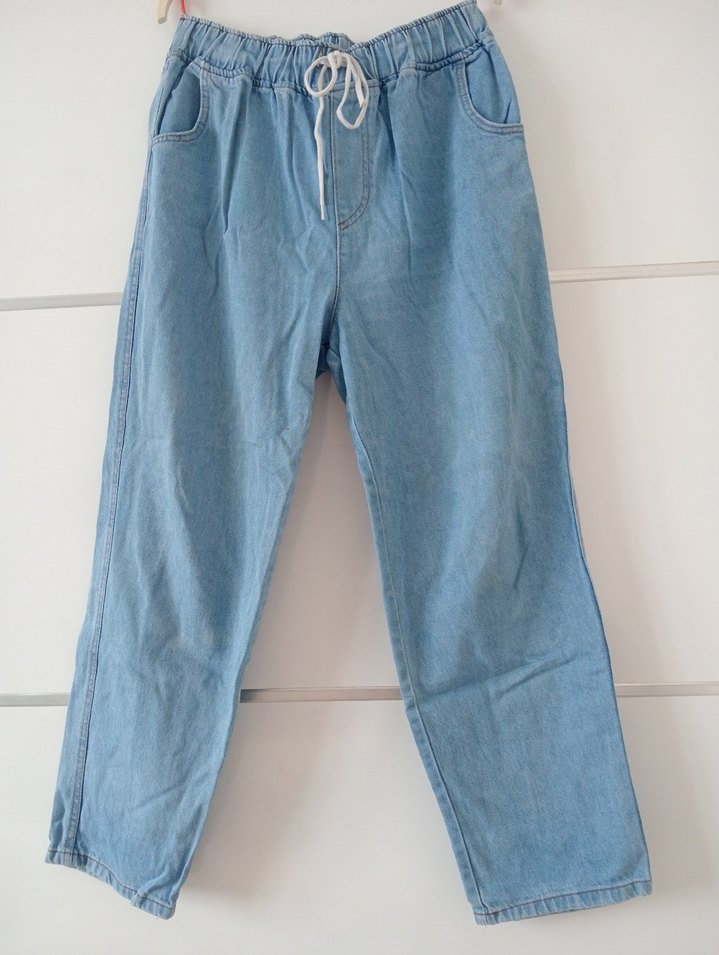 Kadınlar için loose fit, lastikli ve ipli bel detaylı mavi pastel renkte yumuşak denim pantolon. Normal midi boy, gündelik rahat kullanım için uygun. Rahat ve şık görünüme sahip.