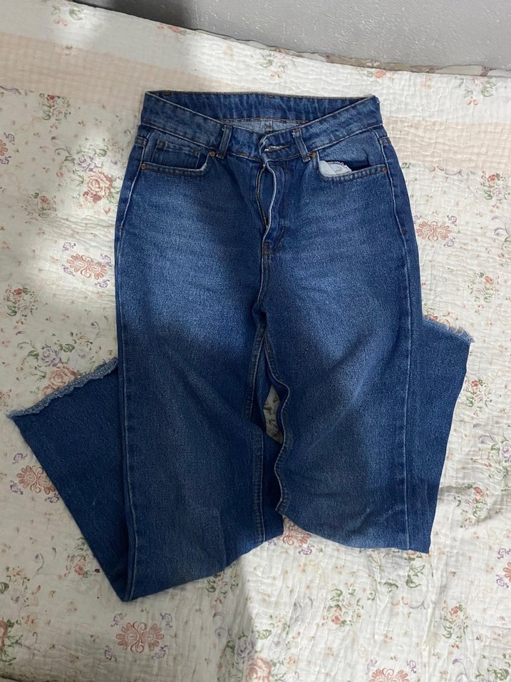 Kadın Mavi Loose Fit Midi Denim Jean