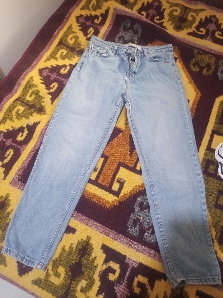 Mavi renkli, bağlama desenli, loose fit kesim midi uzunlukta kadın denim pantolon. Günlük kullanıma uygun rahat ve trend bir sokak stili pantolon.