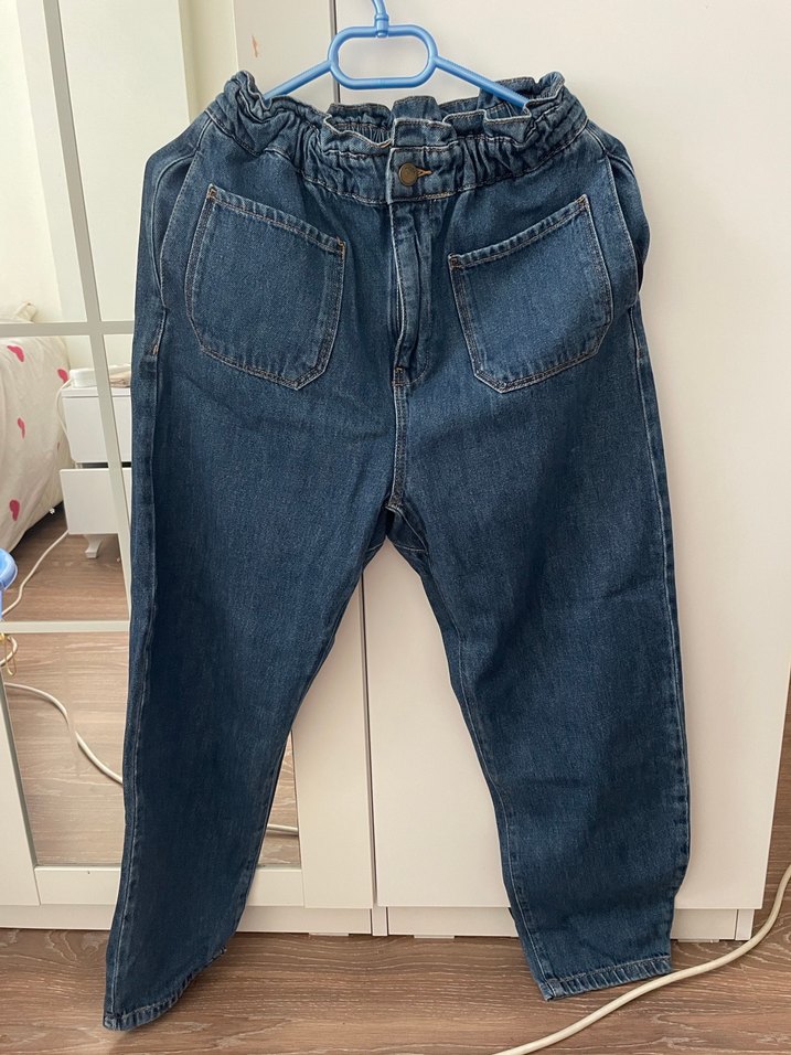 Kadınlar için loose fit mavi denim kot pantolon, kemerli ve midi boyda. Ön cepler ve desensiz tasarım, günlük rahat kullanım için uygundur. CEPLER ÖN KISIMDADIR MARKA TEMSİLİDİR