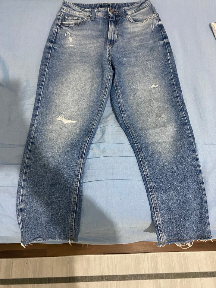 Kadın Mavi Loose Fit Midi Kot Pantolon