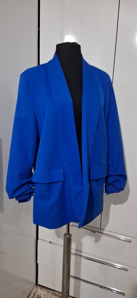Kadın Mavi Midi Blazer Ceket