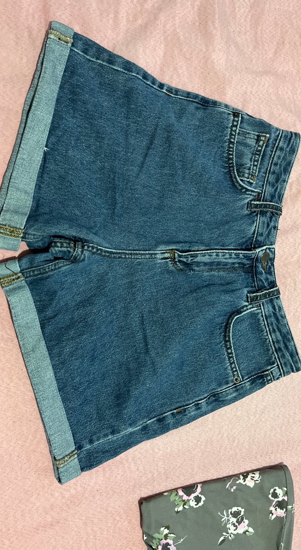 Kadınlar için bol kesim, midi boyda açık mavi denim şort. Günlük kullanım için rahat ve şık bir sokak stili sunar.