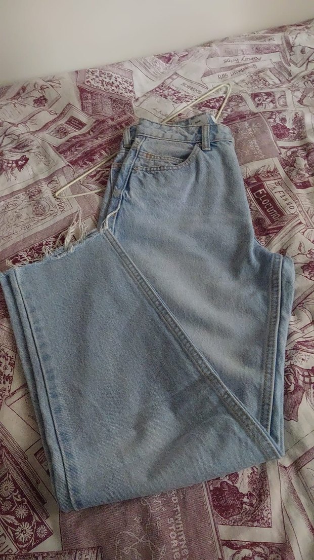 Kadın mavi denim jean, bol kesim ve midi boy. Günlük kullanıma uygun rahat ve şık sokak stili sunar.