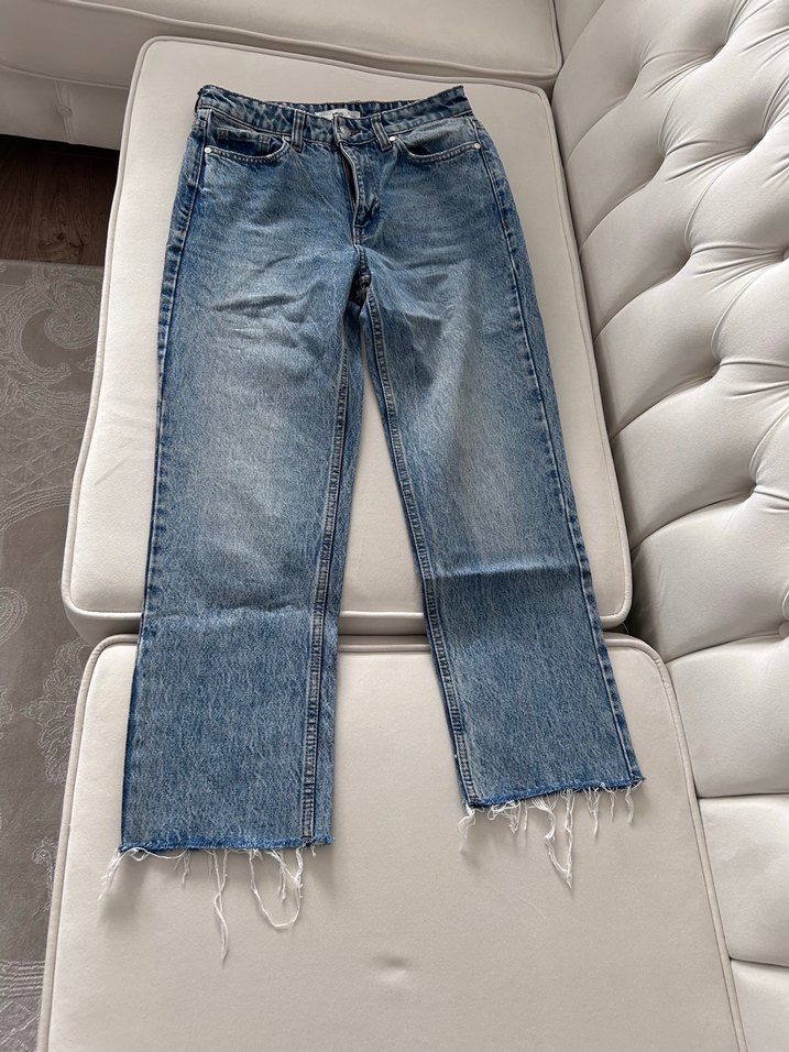 Mavi denim kumaştan jean. Rahat kesimli, desen içermeyen, gündelik kullanıma uygun normcore tarzında. Paçalarında salaş detaylar bulunur.