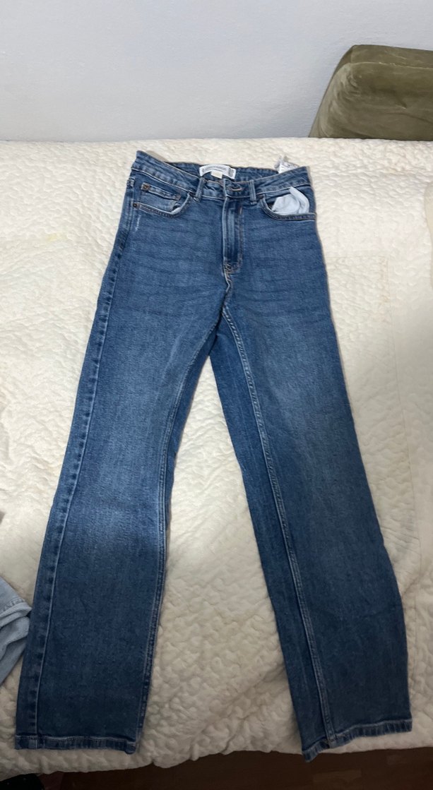 Mavi midi boy, regular fit, kürk detaylı kot pantolon. Desensiz, gündelik kullanıma uygun rahat bir normcore tarz sunar.