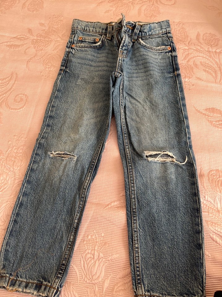Kadınlar için rahat kesim, mavi denim kot pantolon. Belde tokalı ve dizlerinde yırtık detaylıdır. Midi boyu ve desen içermeyen sade tasarımı günlük kullanıma uygundur.