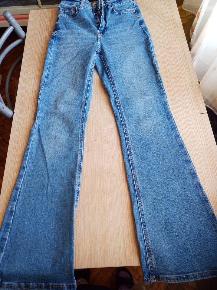 Pastel mavi tonlarda, regular fit ve midi boy kot pantolon. Tokalı detayıyla günlük rahat kullanıma uygun.