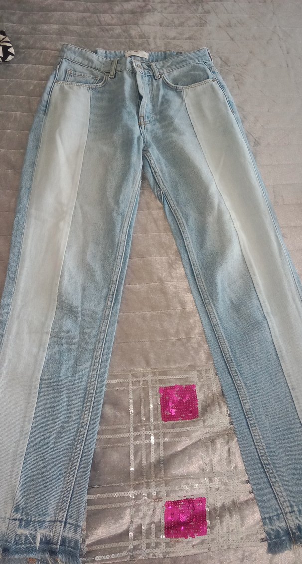 Kadınlar için pastel tonlarda mavi denim midi boy, regular fit jean pantolon. Yanlarında hafif yırtmaç detayı ve desensiz, günlük kullanıma uygun rahat tarz.