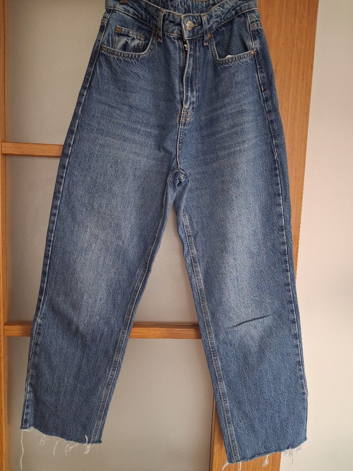Kadınlar için mavi-gri tonlarda, normal boy midi denim pantolon. Rahat kalıp ve desen içermeyen tasarımıyla günlük kullanım için şık ve sade bir seçenek.