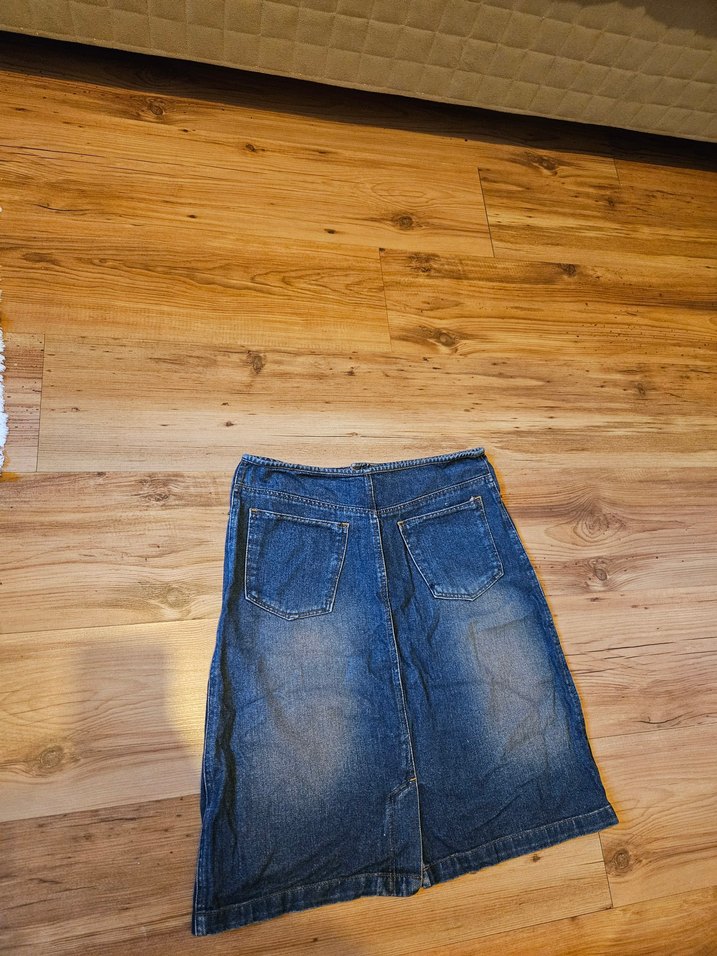Kadın Mavi Midi Denim Vintage Etek