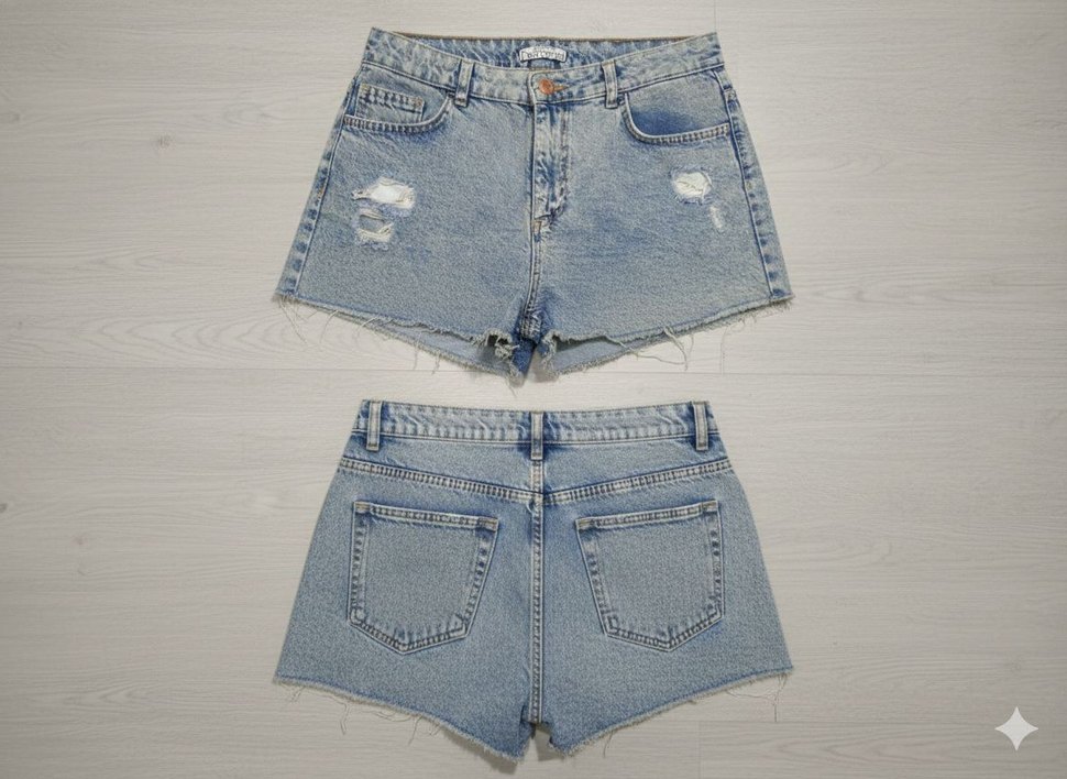 belinde pens mevcut isterseniz actirabilirsiniz.Mavi mini denim şortlar, rahat bol kesimi ve hafif yırtık detaylarıyla günlük kullanım için zahmetsiz şıklık sunar. Trendy ve sokak tarzına uygun.
