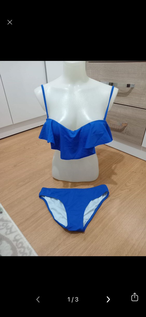 Kadın Mavi Mini Fırfırlı Bikini