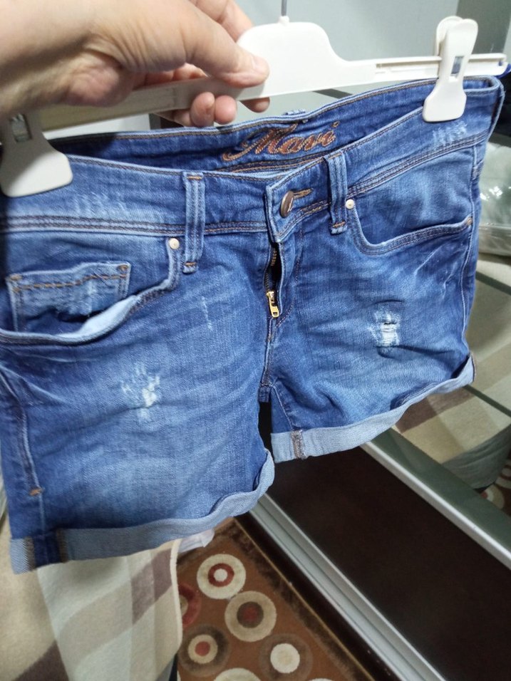 Parlak mavi renkte, tokalı ve dar kesim mini kot şort. Günlük kullanıma uygun, trend sokak tarzına hitap eder. m uyumlu