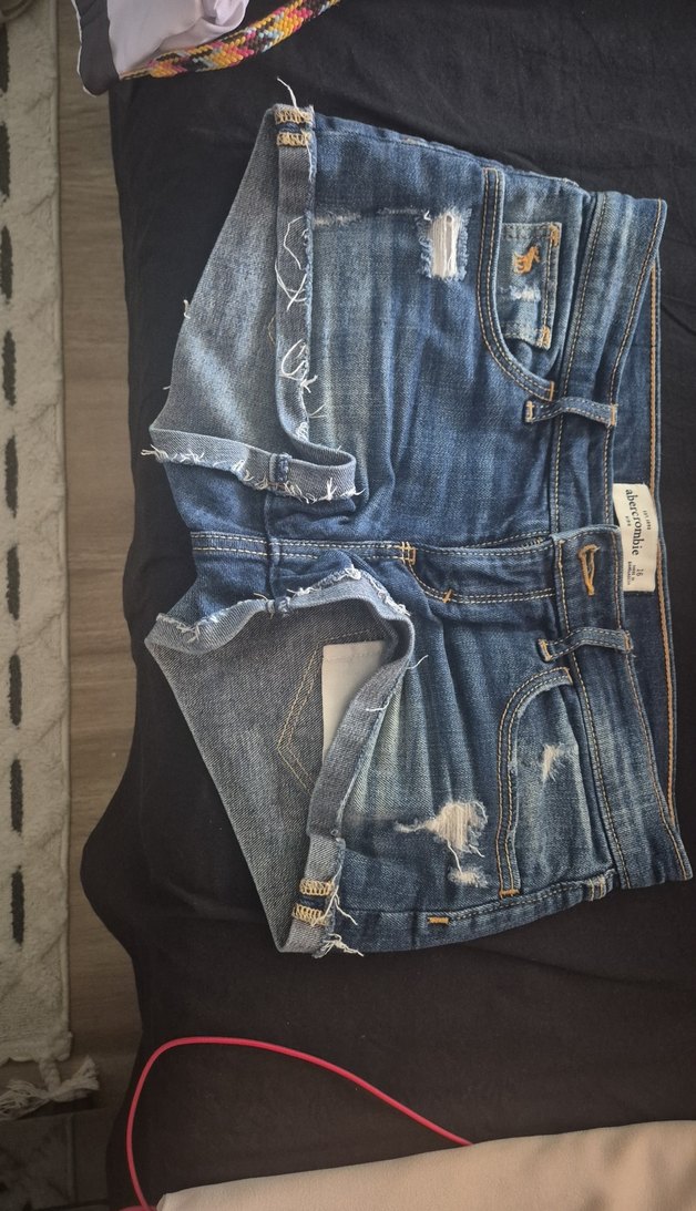 Mavi renkli, belinde tokalı, yırtık detaylı, dar kesim mini kot şort, günlük sokak stiline uygun.beli 36 cm boyu 24 cm