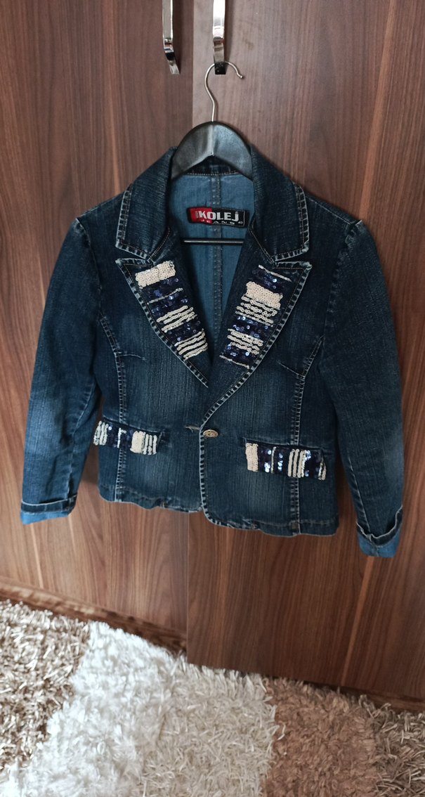 Mavi denim kumaştan, uzun kollu, düğmeli ve nakış detaylı kısa boy ceket. Notlu yaka ve regular kesimle günlük sokak stiline uygun.