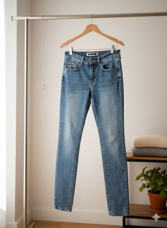 Mavi denim kumaştan, normal boy ve regular fit kesime sahip, desen içermeyen günlük kullanıma uygun kadın jean. Rahat ve şık görünüme sahiptir.