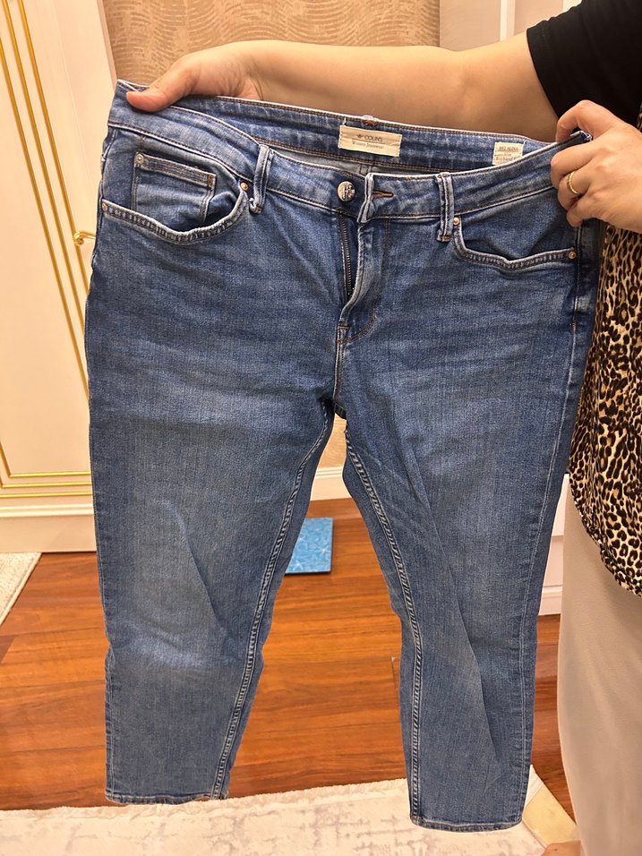 Kadınlar için mavi renkli, normal boy ve regular fit kesime sahip denim pantolon. Desensiz ve tokalı detaylı, günlük rahat kullanıma uygundur.
