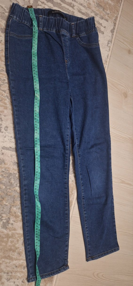 Kadınlar için mavi denim pantolon, normal midi boy ve regular fit. Elastik yapısı ve parlak görünümüyle günlük kullanıma uygundur.