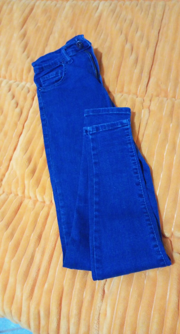 Kadınlar için mavi denim kot pantolon, normal boy ve elastik bele sahip. Desensiz, midi boy bu pantolon rahat sokak stili için uygun. Günlük kullanım için ideal.