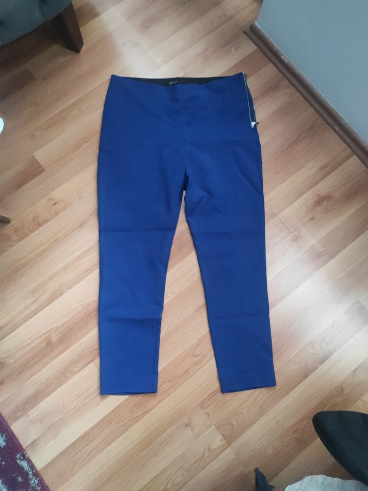Kadınlar için koyu mavi kot pantolon, normal paça ve regular fit. Bel detaylı, desensiz ve günlük kullanıma uygundır.