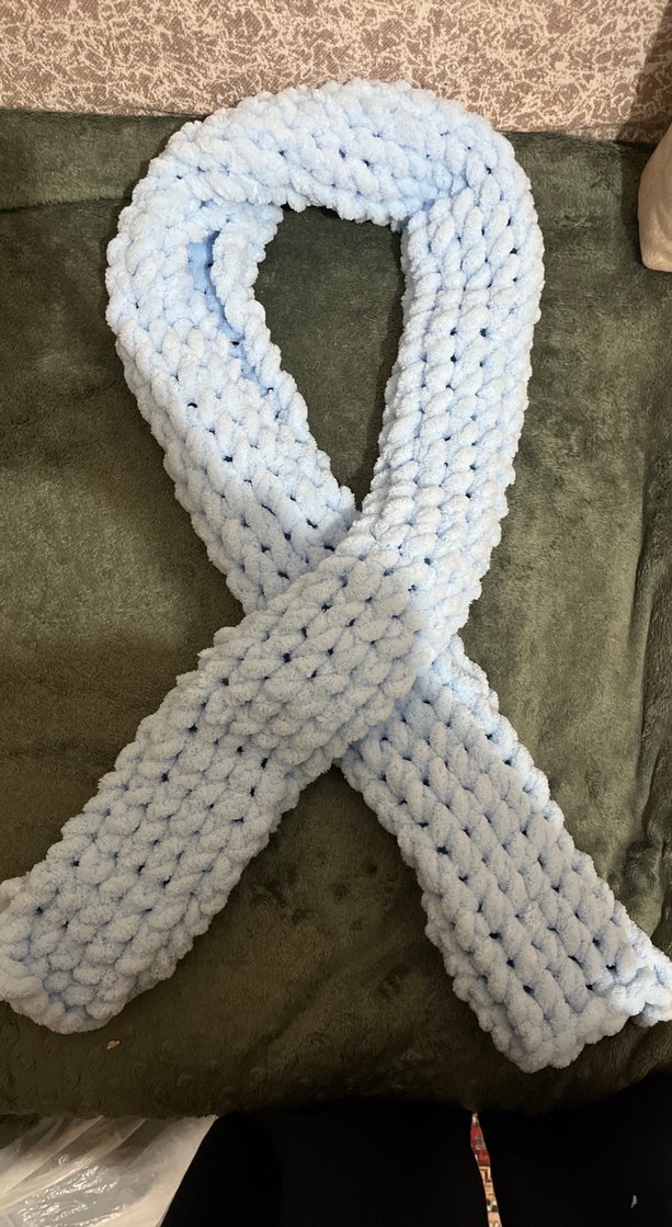 Yumuşak örgüden yapılmış, açık mavi renkte kadın atkısı, kalın örgü deseniyle sıcaklık ve konfor sağlar.