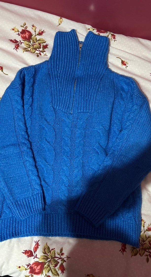 Kadın Mavi Örgü Balıkçı Yaka Kazak