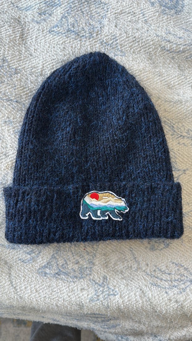 Kadınlar için yumuşak dokulu, mavi örgü bere. Katlanabilir manşeti ve renkli ayı işlemeli detayı vardır. Kaşmir mohair karışımı , marka temsili
