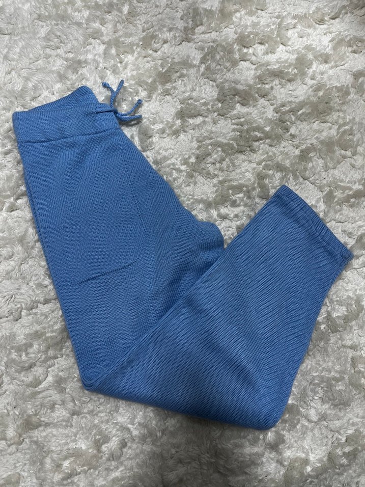 Kadın Mavi Örgü Rahat Kumaş Pantolon