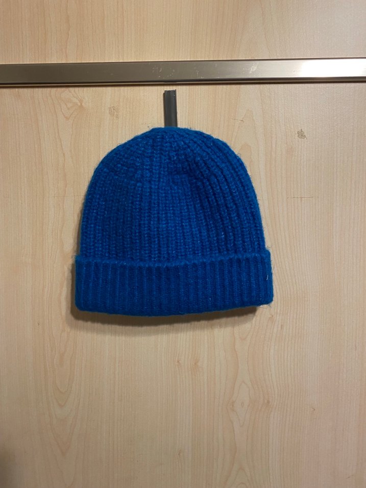 Kadınlar için canlı mavi renkte, yünden örülmüş örgü bere. Rahat ve sade bir stil sunar, temel ve karşı kültür tarzına uygundur.