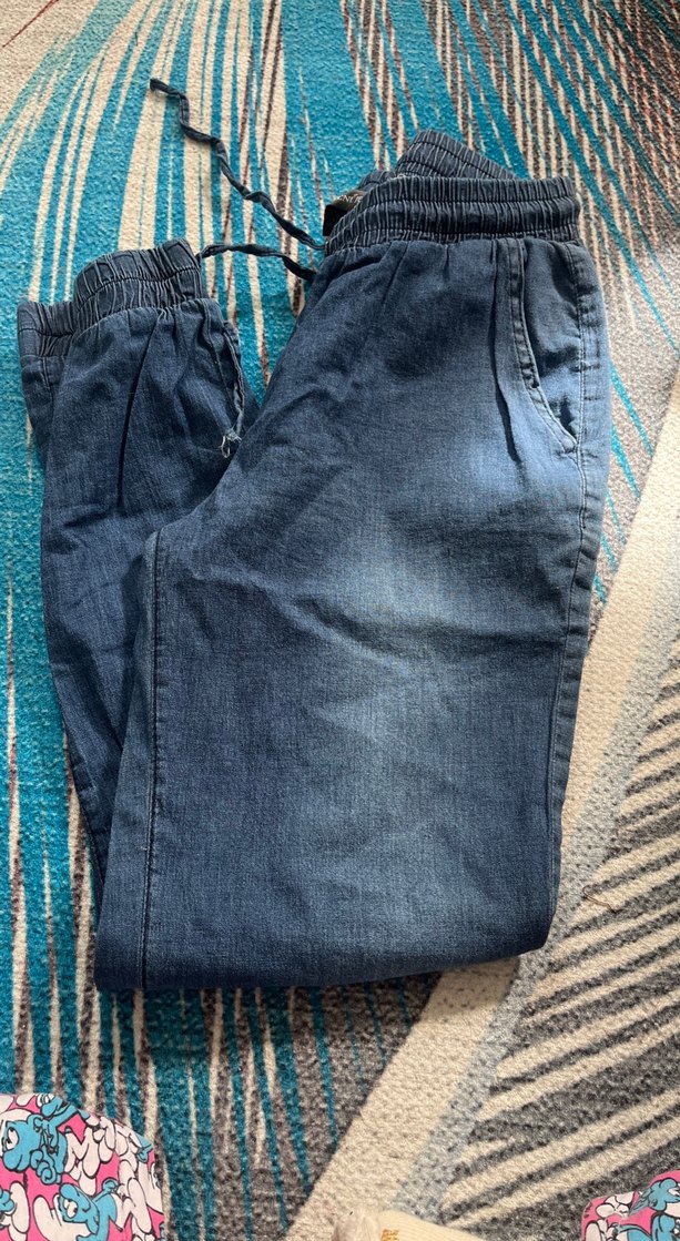 Kadın Mavi paçası lastikli pantolon