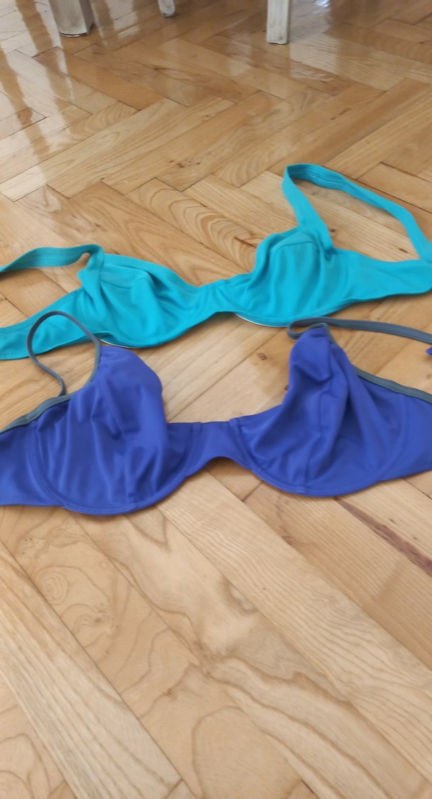 Parlak mavi tonlarda, askılı kollu, kadınlar için oturan bikini üstleri. Cesur ve athleisure tarzıyla plajda rahat şıklık sunar. Normal midi boyda.