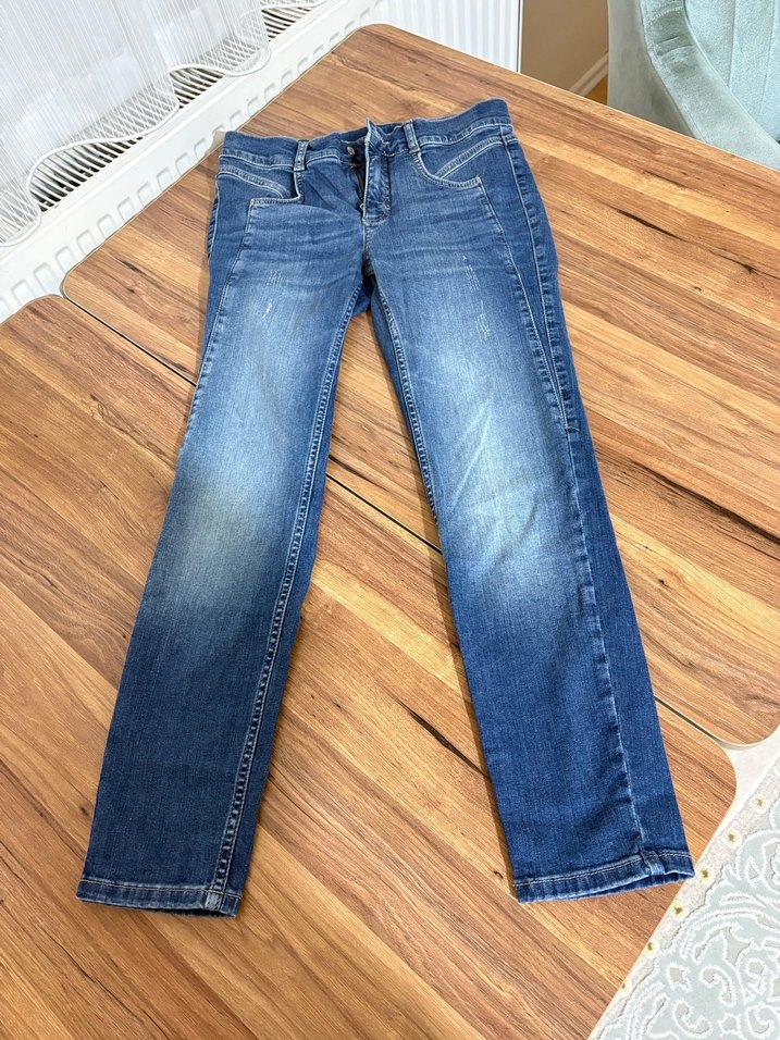 Kadınlar için mavi parlak denimden yapılmış, regular fit ve normal boyda jean. Düz desensiz, gündelik kullanıma uygun rahat şıklık sunar.
