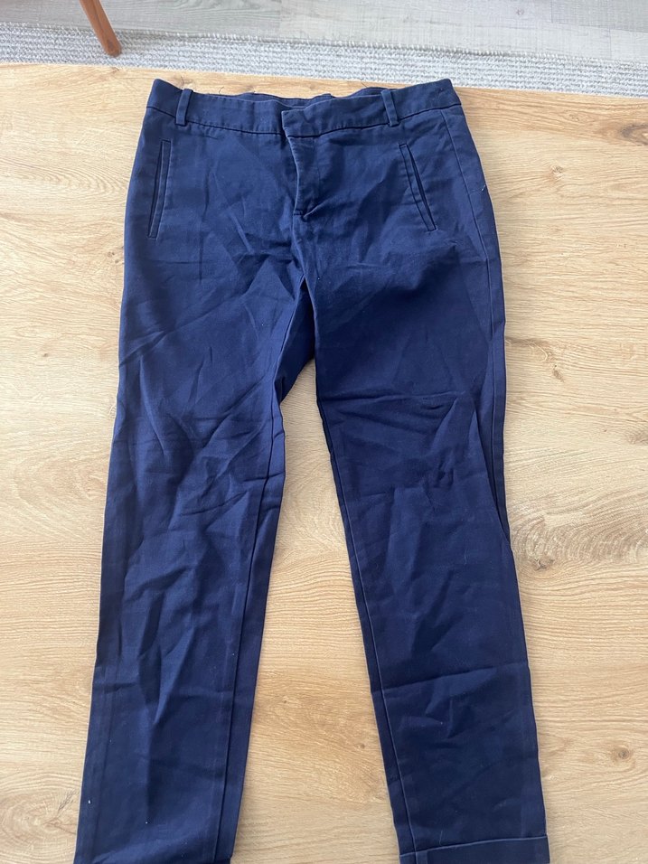 Kadınlar için normal boy, parlak mavi renkte, düz tasarımlı denim pantolon. Ofis kullanımı için minimalist ve zahmetsiz şıklık sunar.