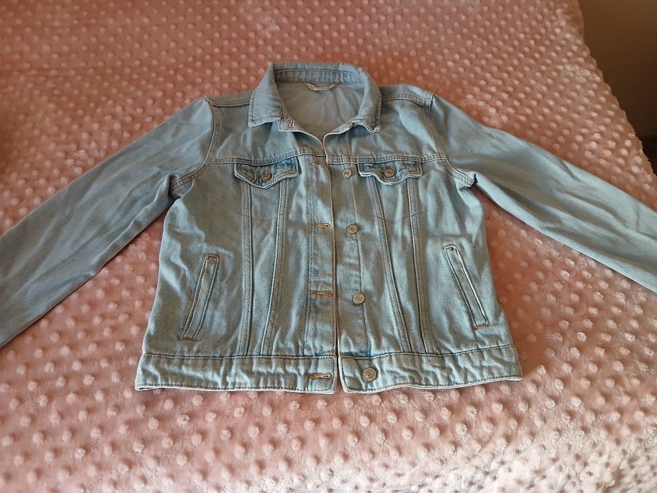 Kadın mavi pastel renkli denim ceket, düğmeli, bol kesim ve çentikli yaka detayına sahiptir. Uzun kollu ve midi boydadır, günlük sokak stili için uygundur.