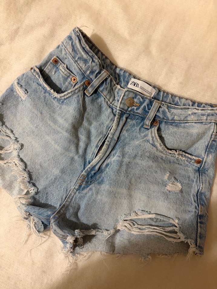 Düğmeli,pastel mavi renkli kadın kot mini şort.