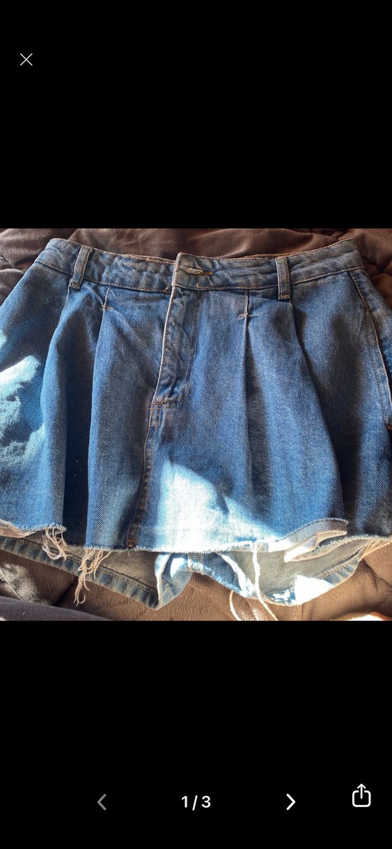 Kadın Mavi Pileli Mini Kot Şort
