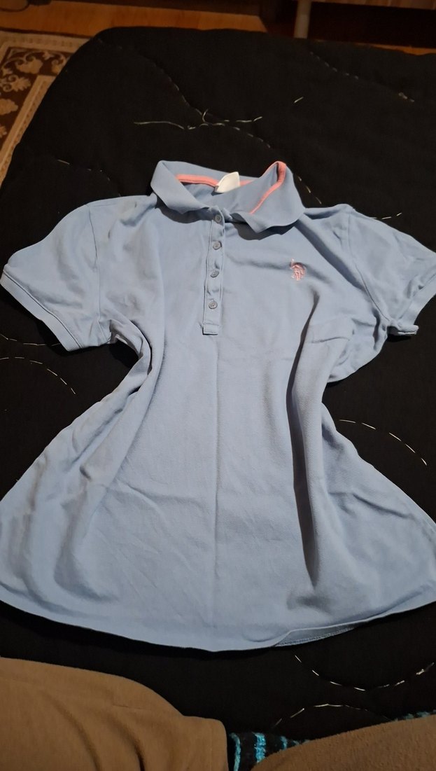 gökyüzü mavisi renginde polo amblemi ve yaka içi pembe temiz ürün
