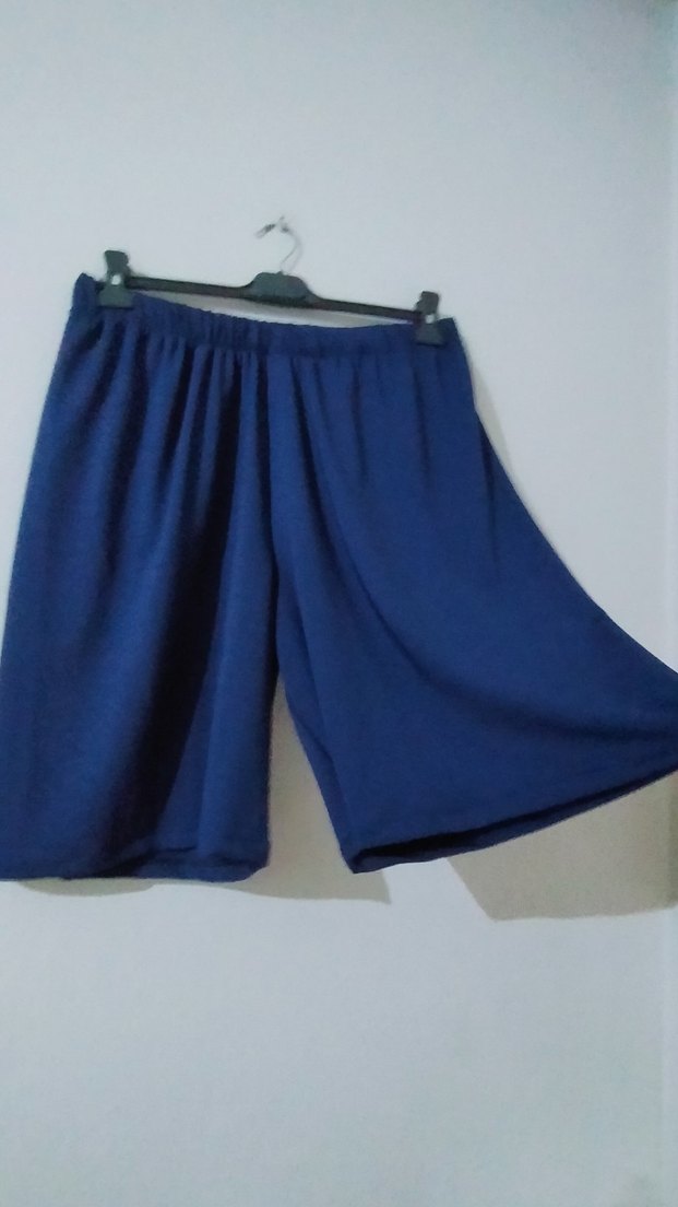 Kadınlar için rahat kesim, kısa boyda koyu mavi Bermuda şort. Yumuşak ve sıcak kumaştan, günlük kullanım için şık ve rahat bir tarz sunar.