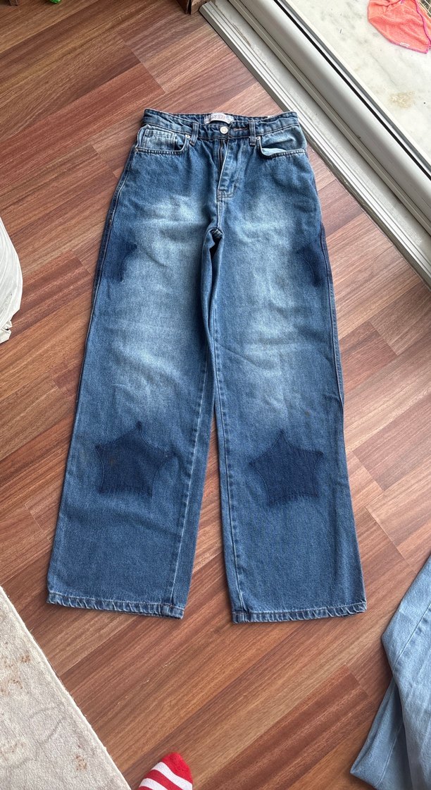 Bu mavi denim pantolonlar, rahat kesimi ve normal boyu ile günlük kullanıma uygun, trendi ve şık bir görünüm sunar. Boy 103 bel 34