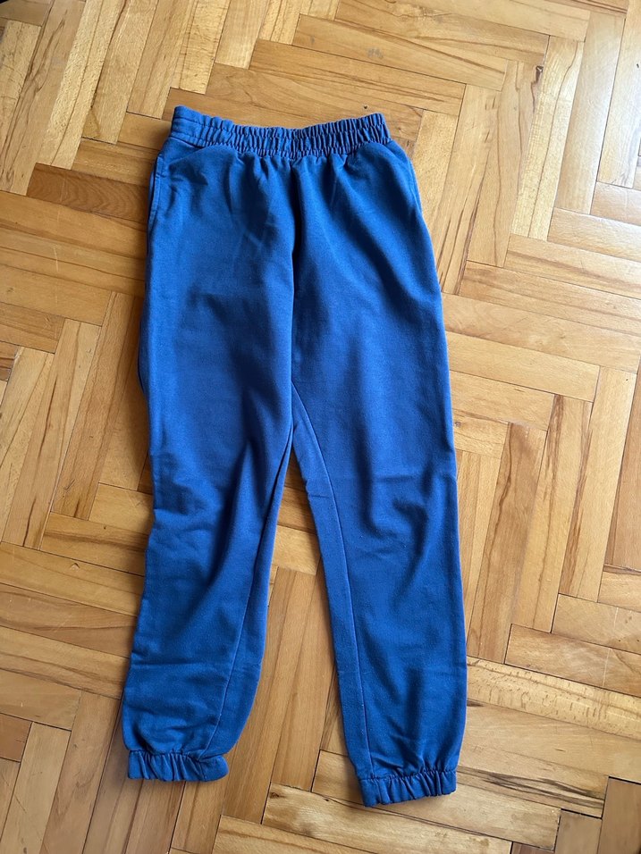 Kadınlar için rahat kesim, normal midi boyda, yumuşak ve sıcak kumaştan yapılmış koyu mavi eşofman altı. Spor ve sokak stili için şık ve rahat. ♀️